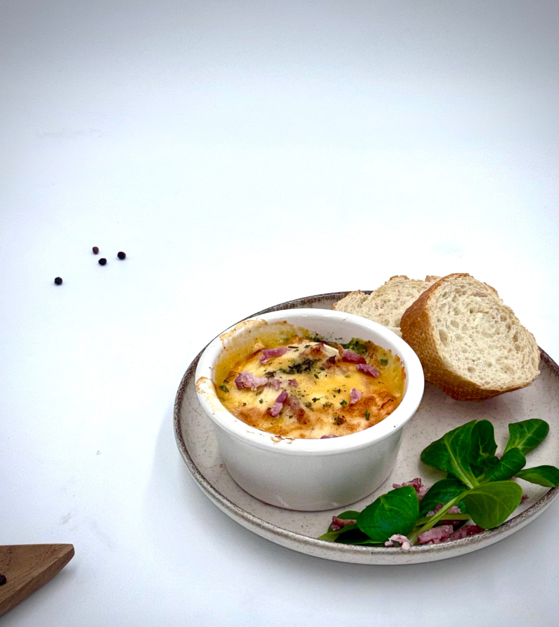 Atlantische zalmflakes met spinazie in de room, afgewerkt met eitjes en een heerlijke béchamelsaus met